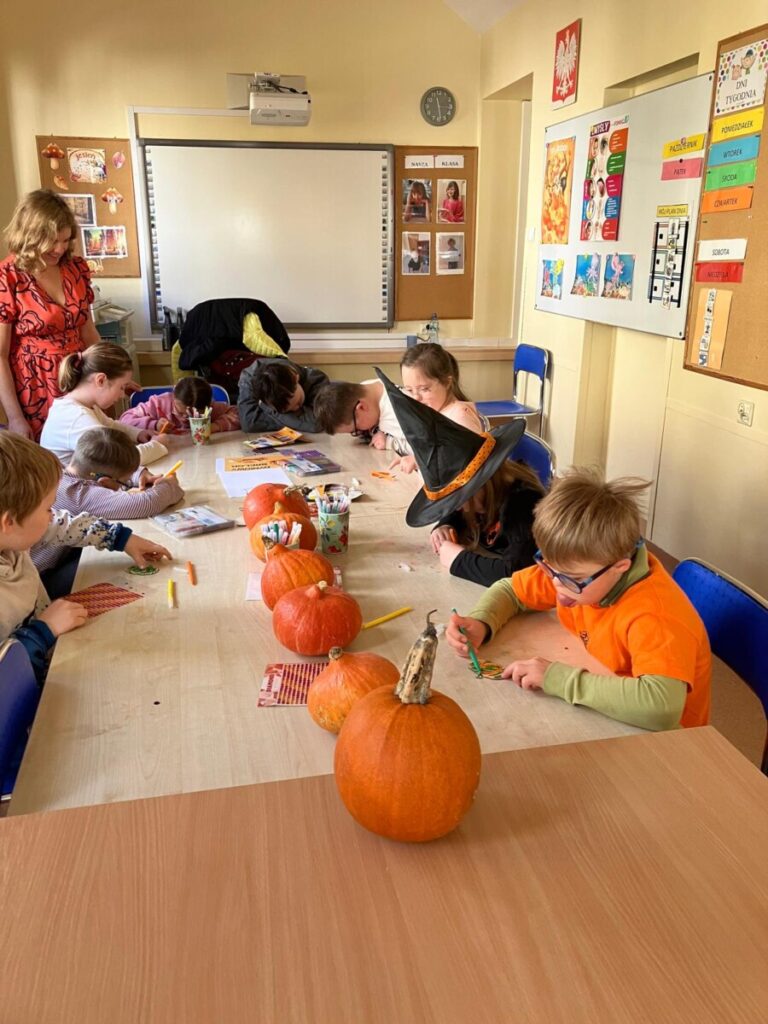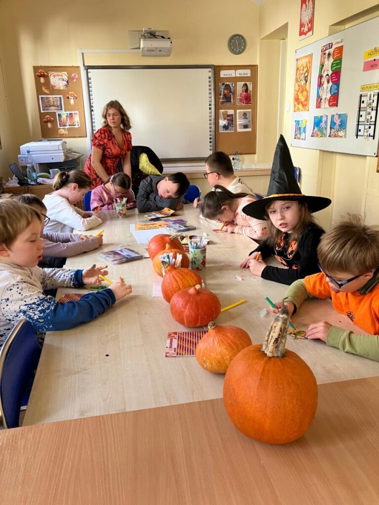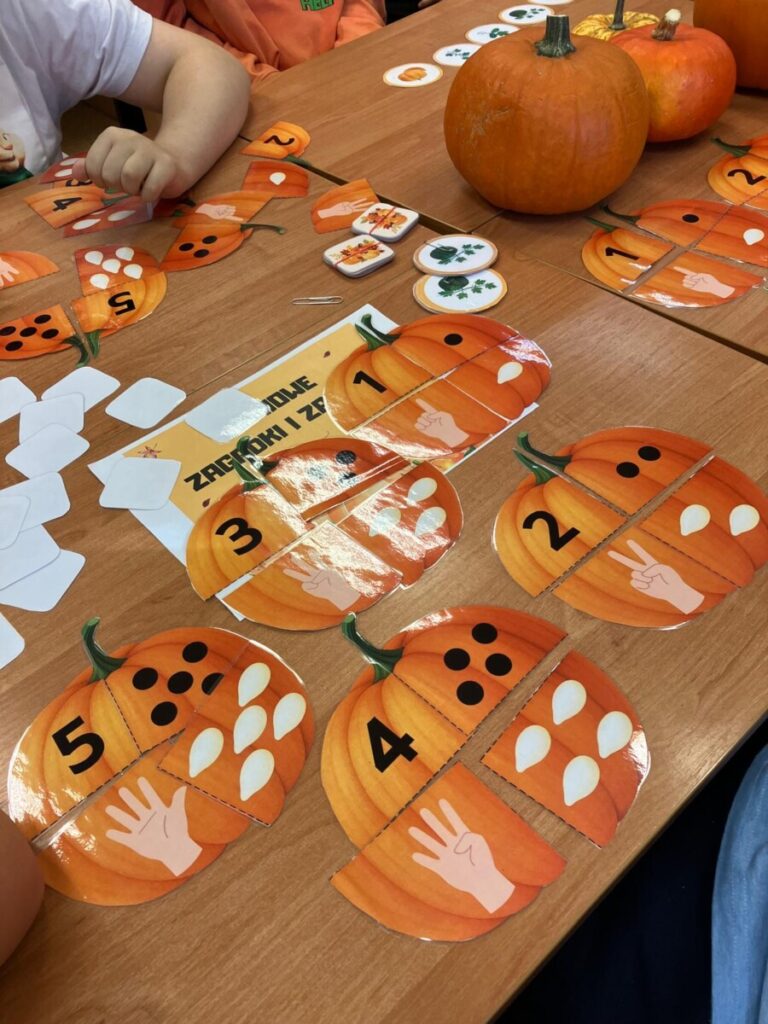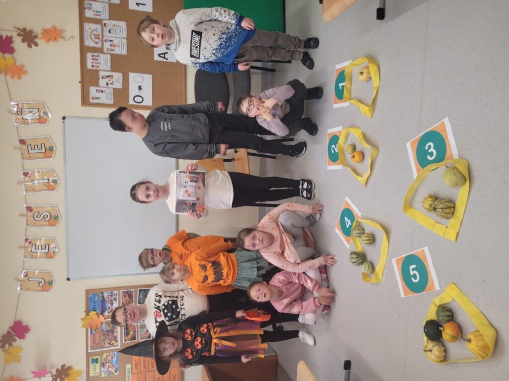 że w centrum naszych działań była dynia. To popularne, jesienne warzywo stało się inspiracją edukacyjną. Quiz, zadania matematyczne, dyniowy tor przeszkód, zagadki oraz sztuki plastyczne pozwoliły rozwijać wiedzę i umiejętności. Dzień dyni upłynął w dobrym nastroju, w klimacie życzliwej współpracy.
