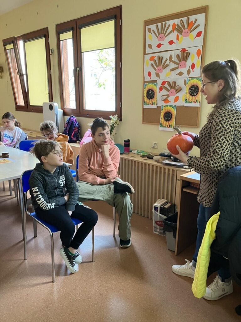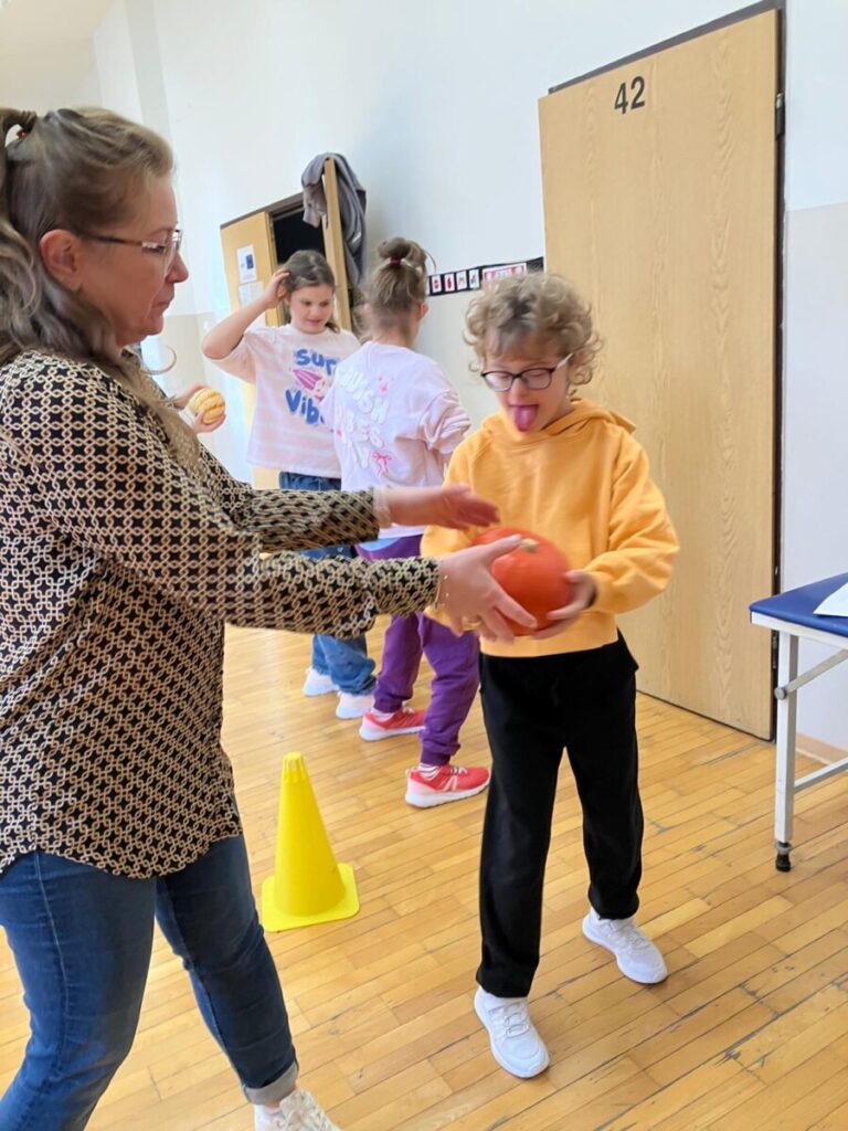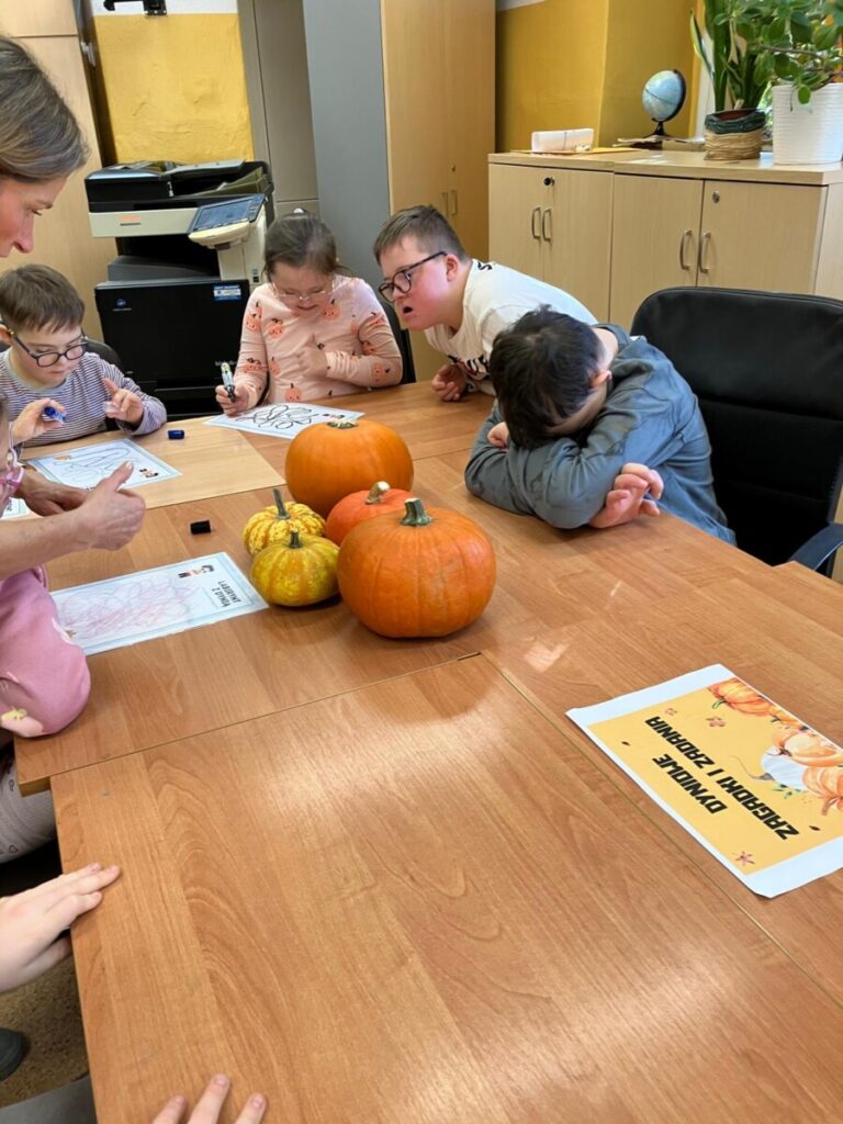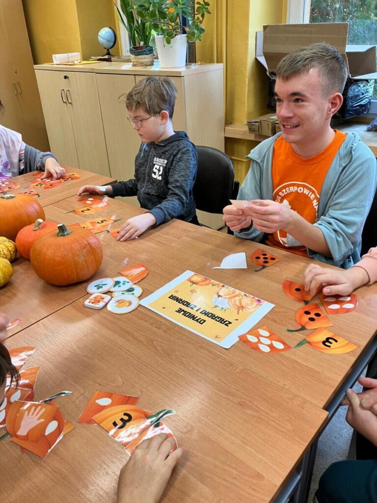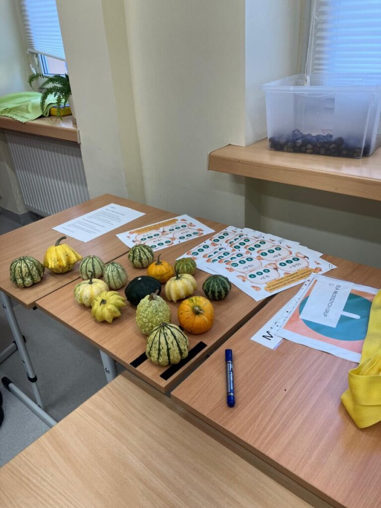że w centrum naszych działań była dynia. To popularne, jesienne warzywo stało się inspiracją edukacyjną. Quiz, zadania matematyczne, dyniowy tor przeszkód, zagadki oraz sztuki plastyczne pozwoliły rozwijać wiedzę i umiejętności. Dzień dyni upłynął w dobrym nastroju, w klimacie życzliwej współpracy.